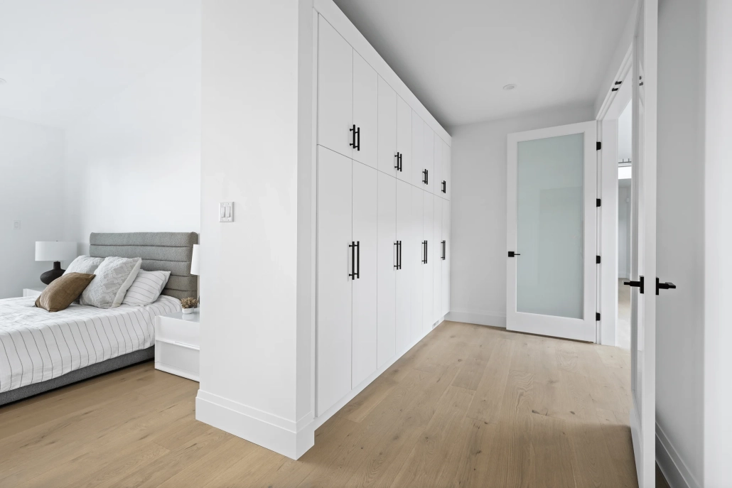 The Primary Suite is a private sanctuary designed for ultimate relaxation and luxury. Located in a secluded wing of the house, the suite boasts stunning panoramic views of the Winchelsea Islands. The suite’s spacious layout includes two custom built-in closets, and a walk-in shower with a deep, freestanding tub.